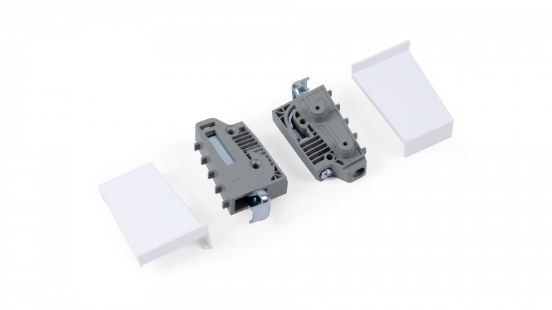 Модель устанавливается на боковых стенках внутри мебельного корпуса в заранее просверленные отверстия в плите. Футорки навеса (являющиеся частью его корпуса) легко со