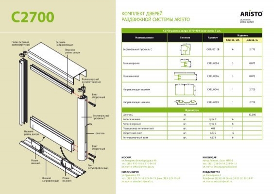 C-2700 Размер двери 2775х900 кол. 3 шт. Полный комплект для 3 дверей.